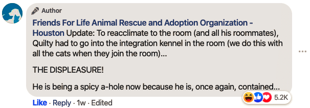 Meet Quilty, the bad boy cat of Friends for Life Animal Rescue of Houston, TX. This spicy boy is going viral for his naughty habit of letting himself and his roommates out all day and night. That’s right — this clever cat opens doors!