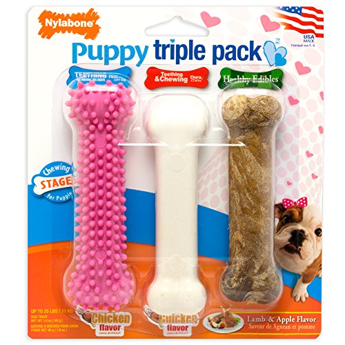 For young puppies who are just discovering the joys of chewing, offer them this starter pack of three Nylabone chews. Available on Amazon for $6.99, 42% off list price.