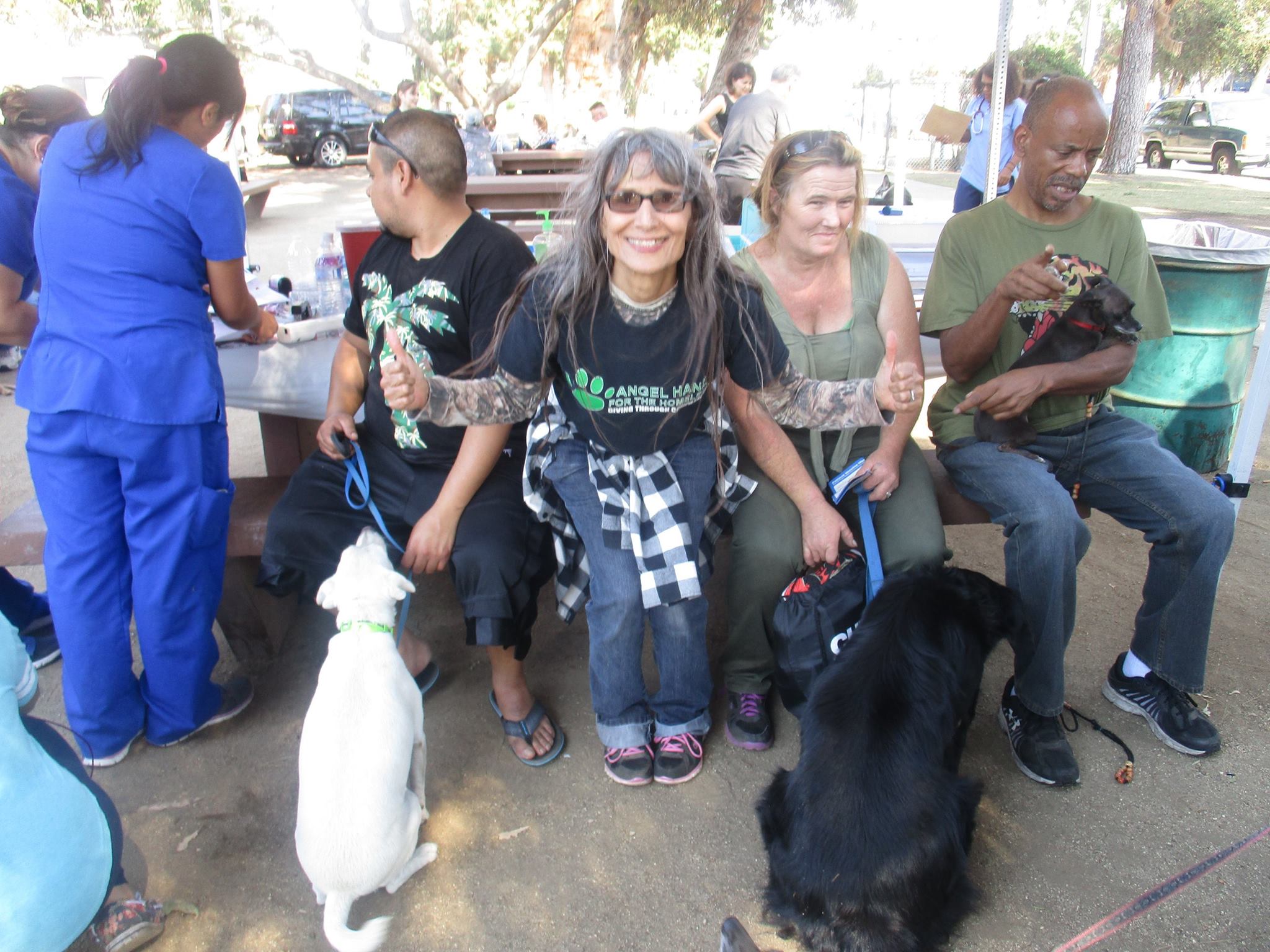 Angel Hanz offers spay/neuter clinics. They have monthly gatherings for the homeless and their pets every last Sunday of the month at North Hollywood Park. Flyers include all the information and an animal abuse hotline. Everyone donates their services, which include: