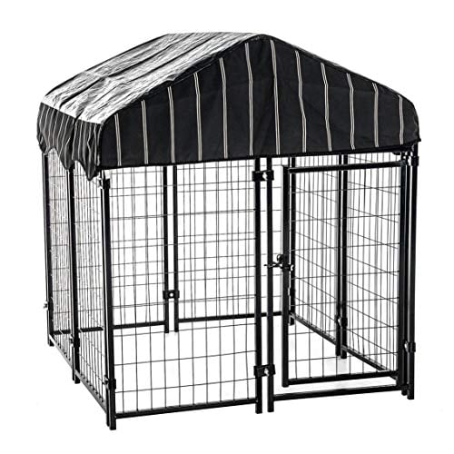 If you have a lot of space, such as a basement or rec room, another possibility is to use an outdoor dog kennel. Note that these do not have any kind of floor, so they will need to be placed where you’re not concerned that the dog (or dog waste) will damage the flooring. The Lucky Dog Uptown Welded Wire Kennel is a well-reviewed choice.