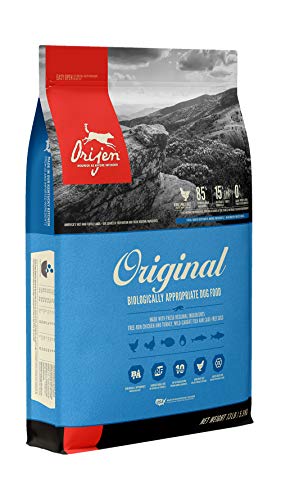 Though on the pricier side, Orijen’s dog food is made from high-quality, regional ingredients. Formulated with 85% animal ingredients (including bone, organs, and cartilage) this dry food is protein-rich and leads with deboned chicken and turkey. You can also find nutrient dense foods such as Atlantic mackerel, cage-free eggs, and whole red lentils. Cooked in the USA, this recipe is grain free.