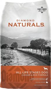Cage-free chicken is the leading ingredient in Diamond Naturals’ formula, which also includes whole grains, fruits and veggies. You’ll also find omega fatty acids in this recipe, as well as probiotics. This recipe contains zero wheat, corn, or soy and is also free of artificial flavors, colors or preservatives.