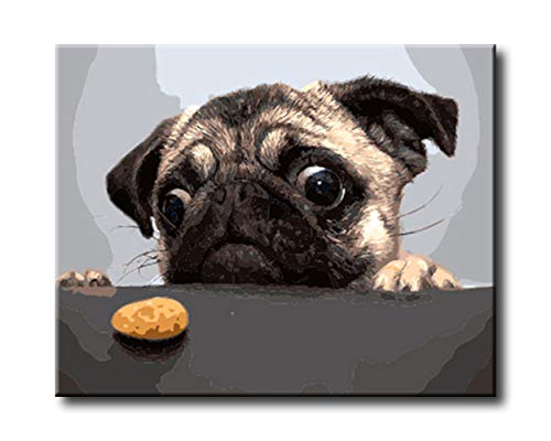 Pug-lovers will appreciate the subject of this paint by number artwork: a pug staring intently at a cookie on a countertop, his eyes wide as he contemplates eating it. With this paint by number, you have the option of several different canvas sizes (16 by 20, 20 by 26, or 24 by 30 inches), and the kit includes acrylic paints and brushes.