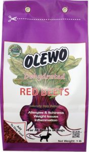 Feel the beet! Think of this treat as the gravy to the turkey, if you will, but super healthy! Made without additives or GMOs for dogs with allergies, the nutritionally dense and anti-inflammatory root veggie can help prevent and relieve a myriad of issues from tear stains to yeast infections.