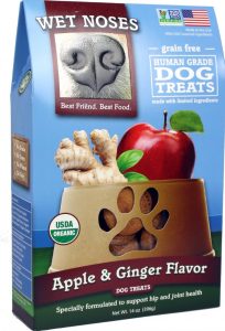 Wet Noses checks a lot of boxes: its ingredients are certified organic, they are made in the USA, and their treats are made without gluten and fillers. Plus, they offer tons of flavors that are yummy and gentle in your dog’s tummy.