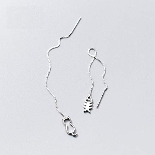 This delicate sterling silver threader pair has a touch of whimsy with its mismatched (but complementary) cat and fishbone charms.